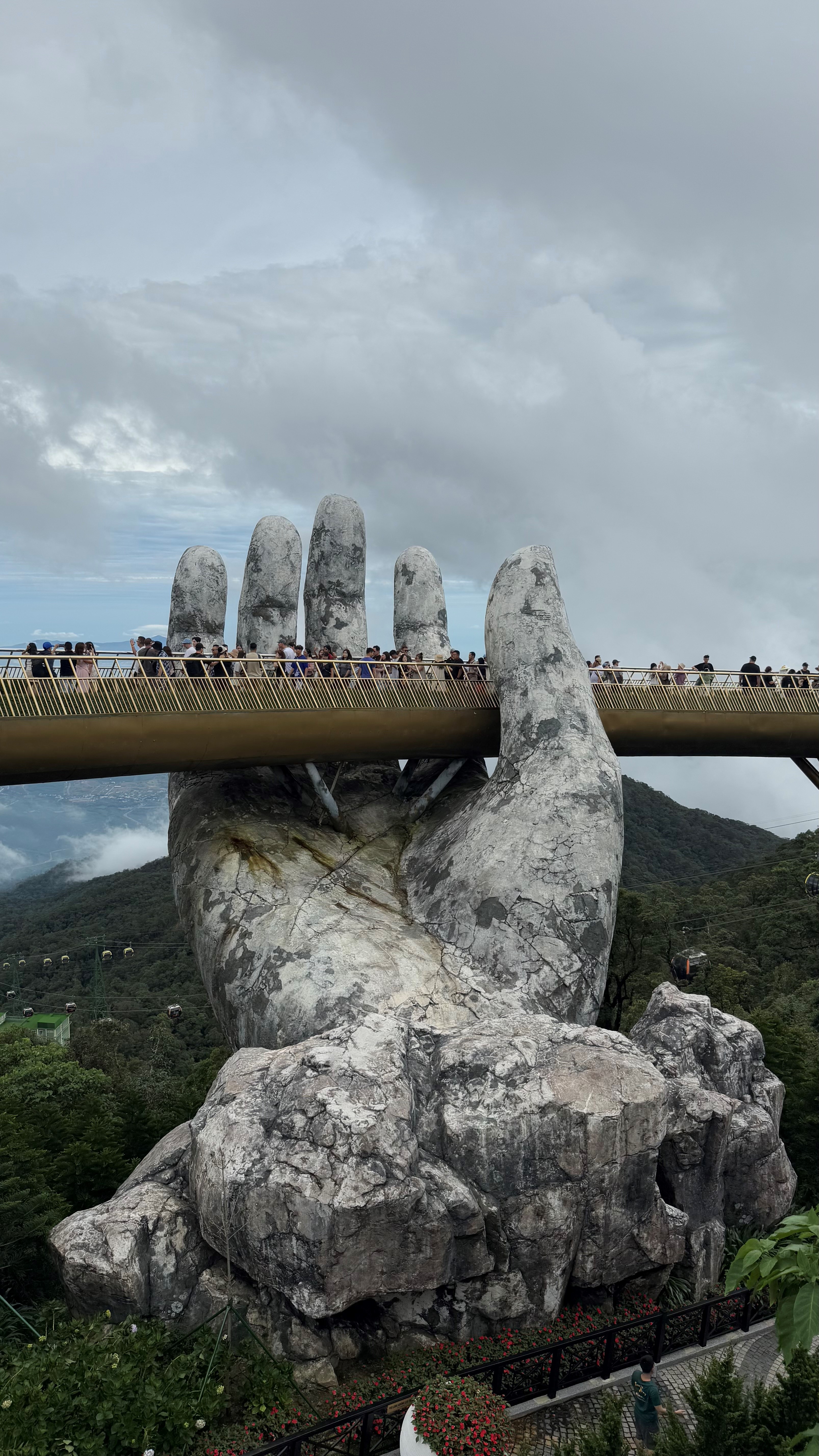 Nach so vielen grauen Tagen kam endlich die Sonne hervor, endlich! Passend zu unserem Ausflug zu den Ba Na Hills. Schon die Seilbahnfahrt hinauf war atemberaubend und oben erwartete uns blauer Himmel, frische Bergluft und natürlich die berühmte Goldene Brücke, die von riesigen Stein-Händen getragen wird. Dieses Bild bleibt wohl jedem im Gedächtnis - so beeindruckend, surreal und wunderschön.