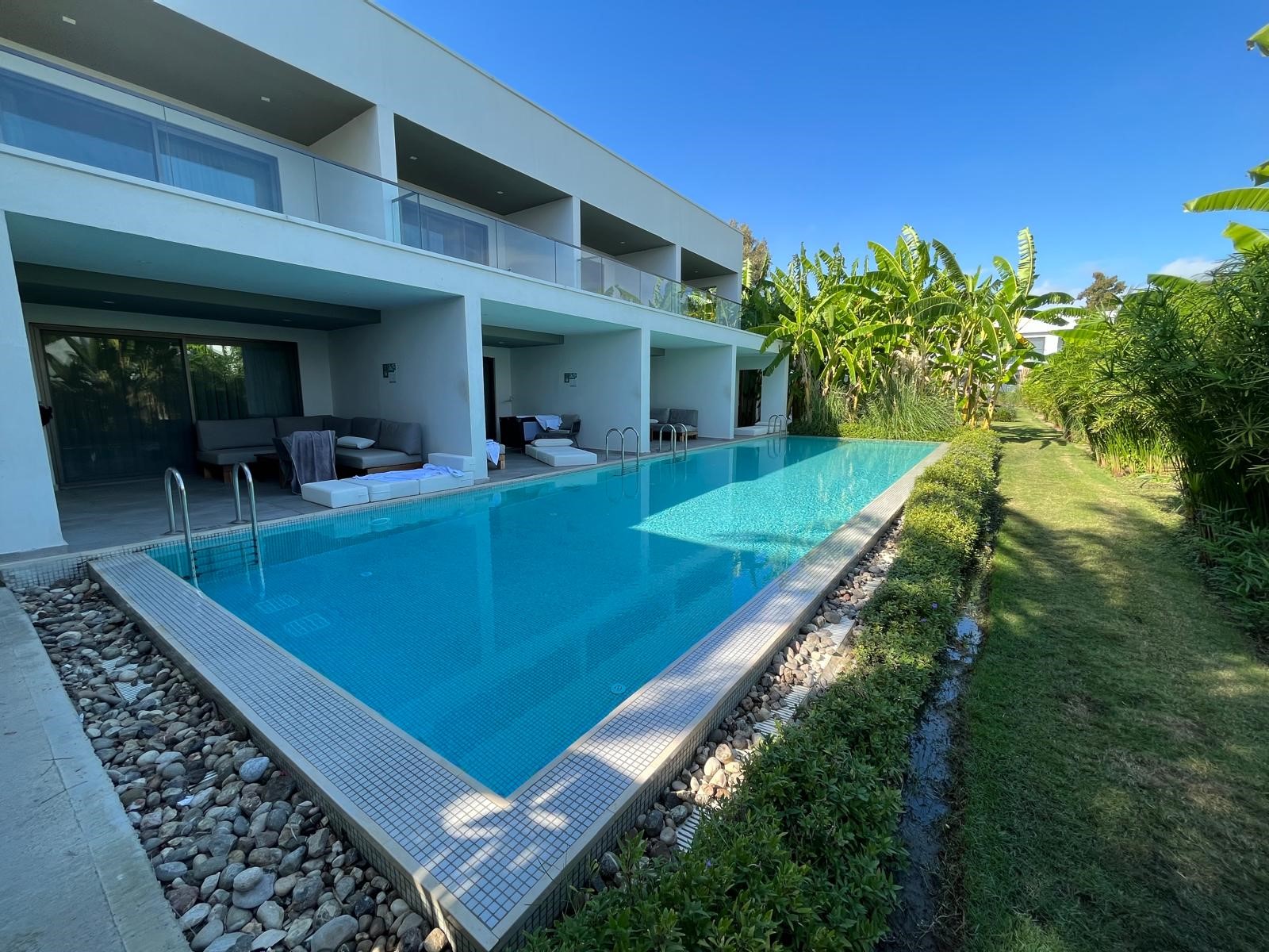 Im Anschluss ging es weiter nach Side Titreyengöl zu den direkt nebeneinanderliegenden Hotels Paloma Orenda und Paloma Finesse. Nach einem leckeren Mittagessen am Strand wurden uns die beiden Anlagen gezeigt und wir waren begeistert vom modernen Design, dem zuvorkommenden Service der Mitarbeiter sowie der liebevoll angelegten Gartenanlage der beiden Resorts.